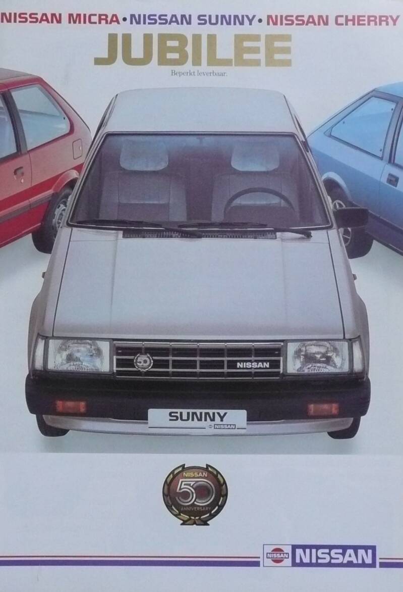 Een Nederlandstalige brochure met 6 pagina's. Uitgifte datum 01-1984. Beschrijft de Jubilee modellen van de Micra, Sunny en Cherry.