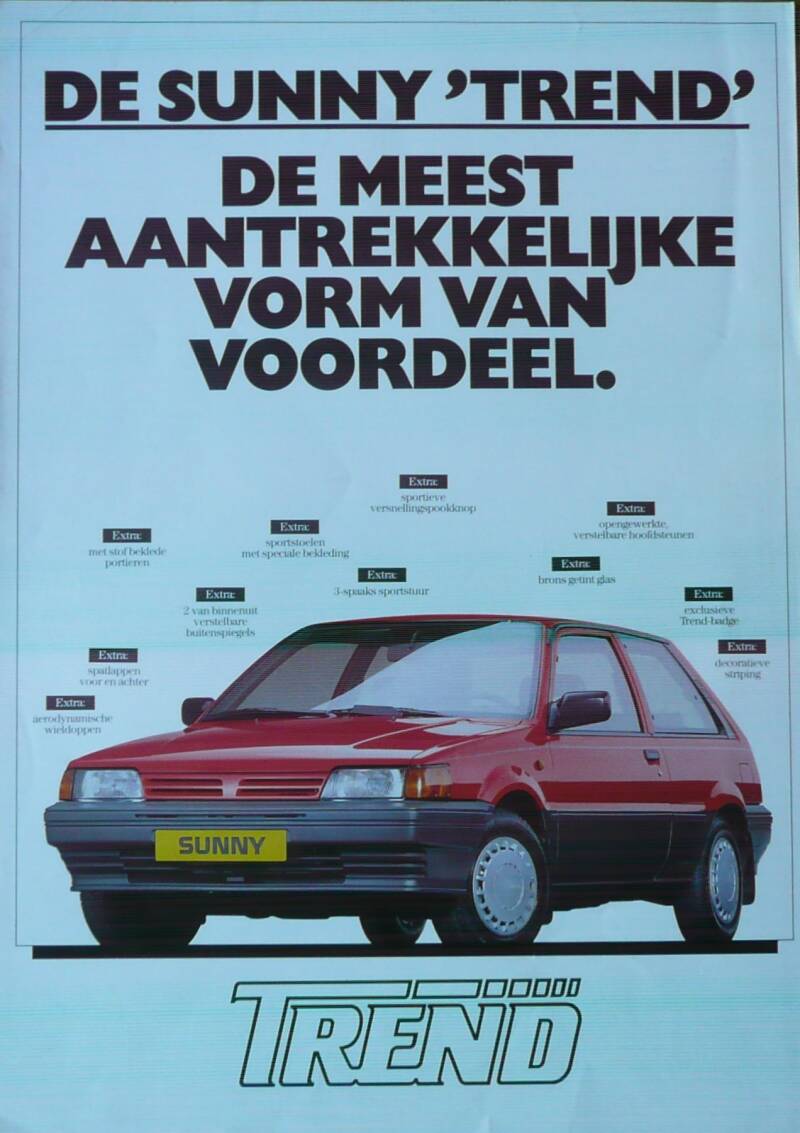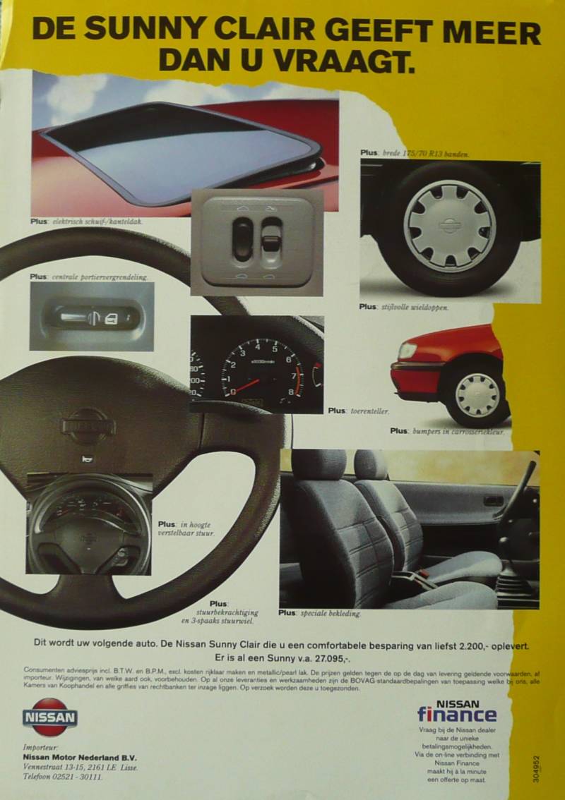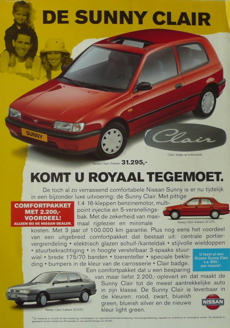 Een Nederlandse leaflet van de Sunny Clair. Uitgifte datum 03-1994? Een leaflet van mijn derde auto.
