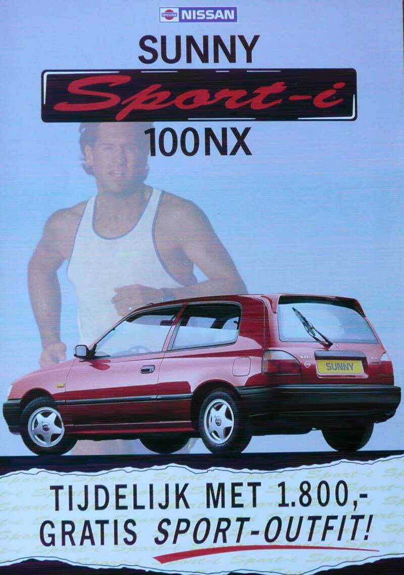 Een Nederlandstalige leaflet. Uitgifte datum 05-1993?. Beschrijft de Sunny en 100NX Sport-i.