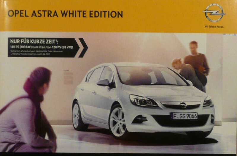 Een Duitstalige brochure met 8 pagina's. Uitgifte datum 02-2012. Beschrijft de Astra White Edition.