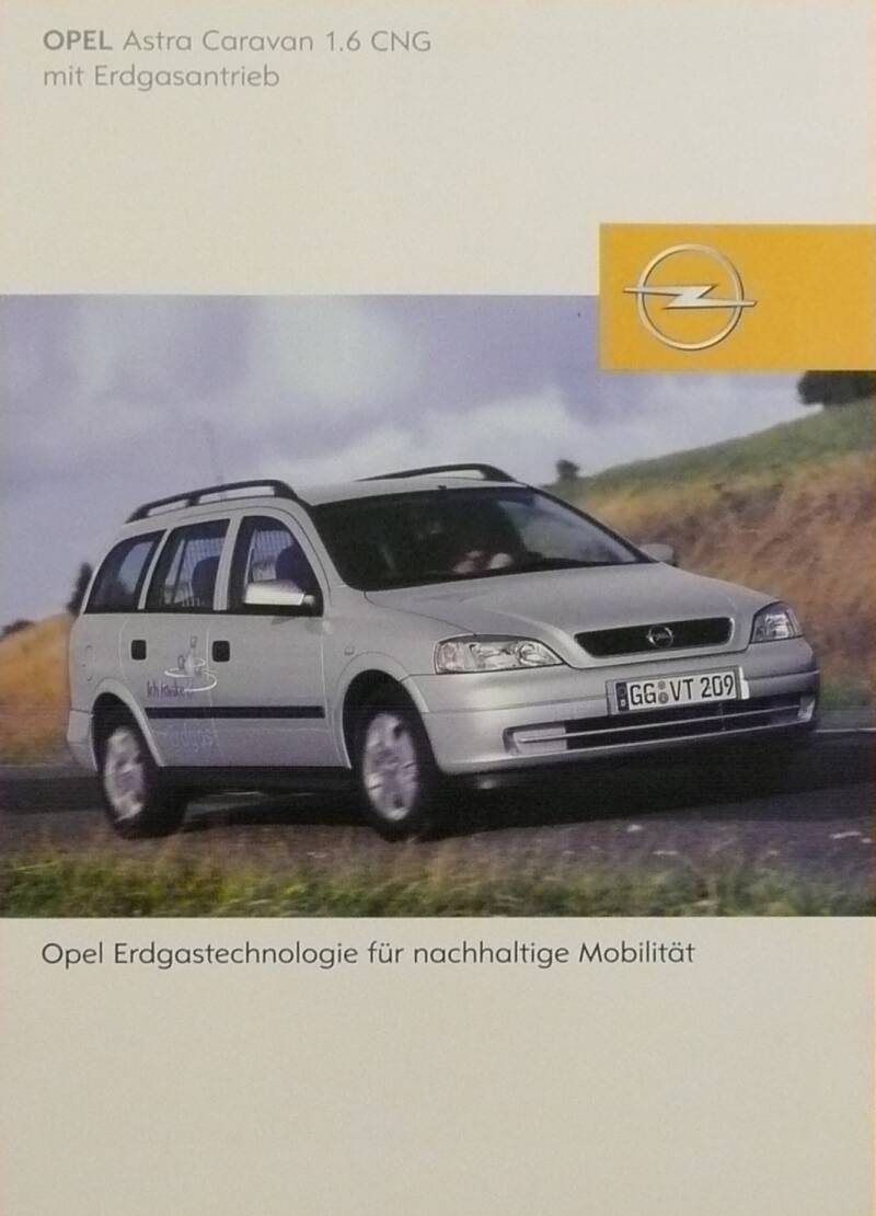 Een Duitstalige brochure met 8 pagina's. Uitgifte datum 08-2002. Beschrijft de Astra Caravan 1.6 CNG met Erdgasantrieb.