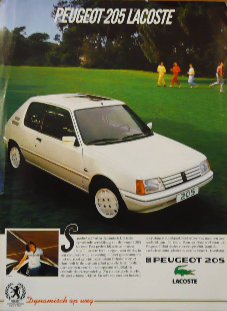 Een Nederlandstalige leaflet. Uitgegeven in 1986. Beschrijft de 205 Lacoste.