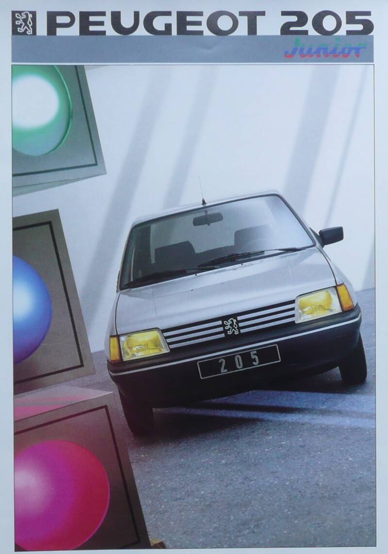 Een Nederlandstalige brochure met 6 pagina's. Uitgegeven in 1987. Beschrijft de 205 Junior.