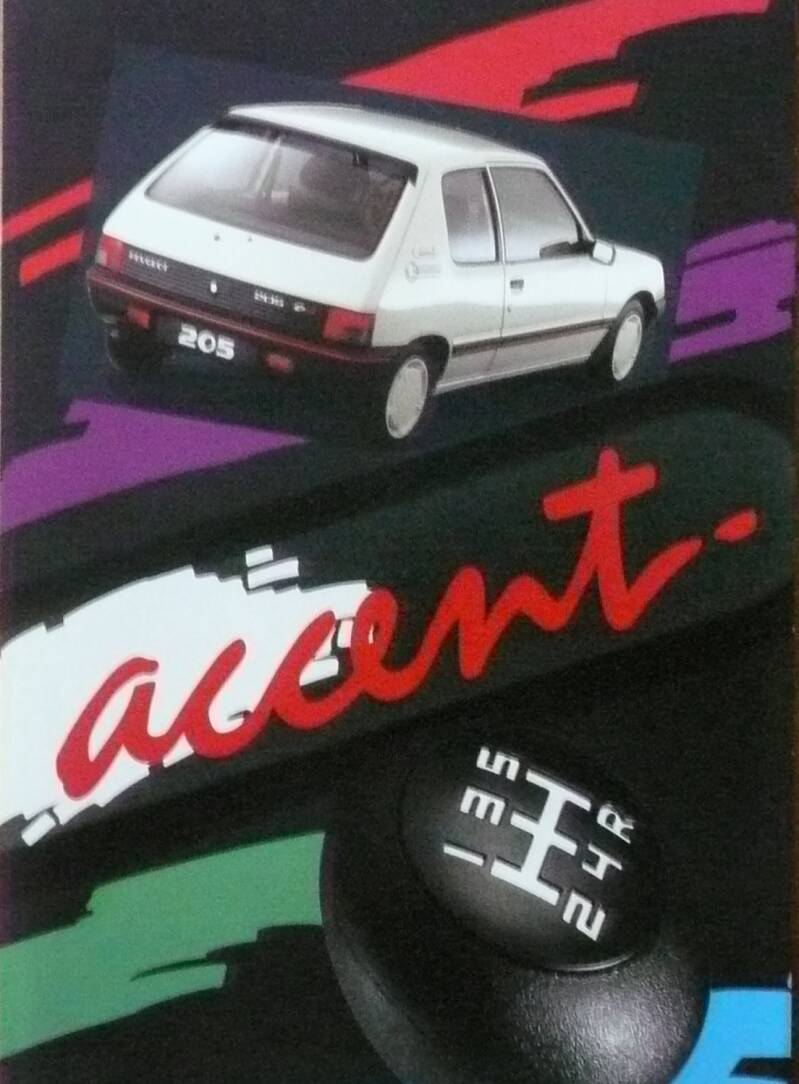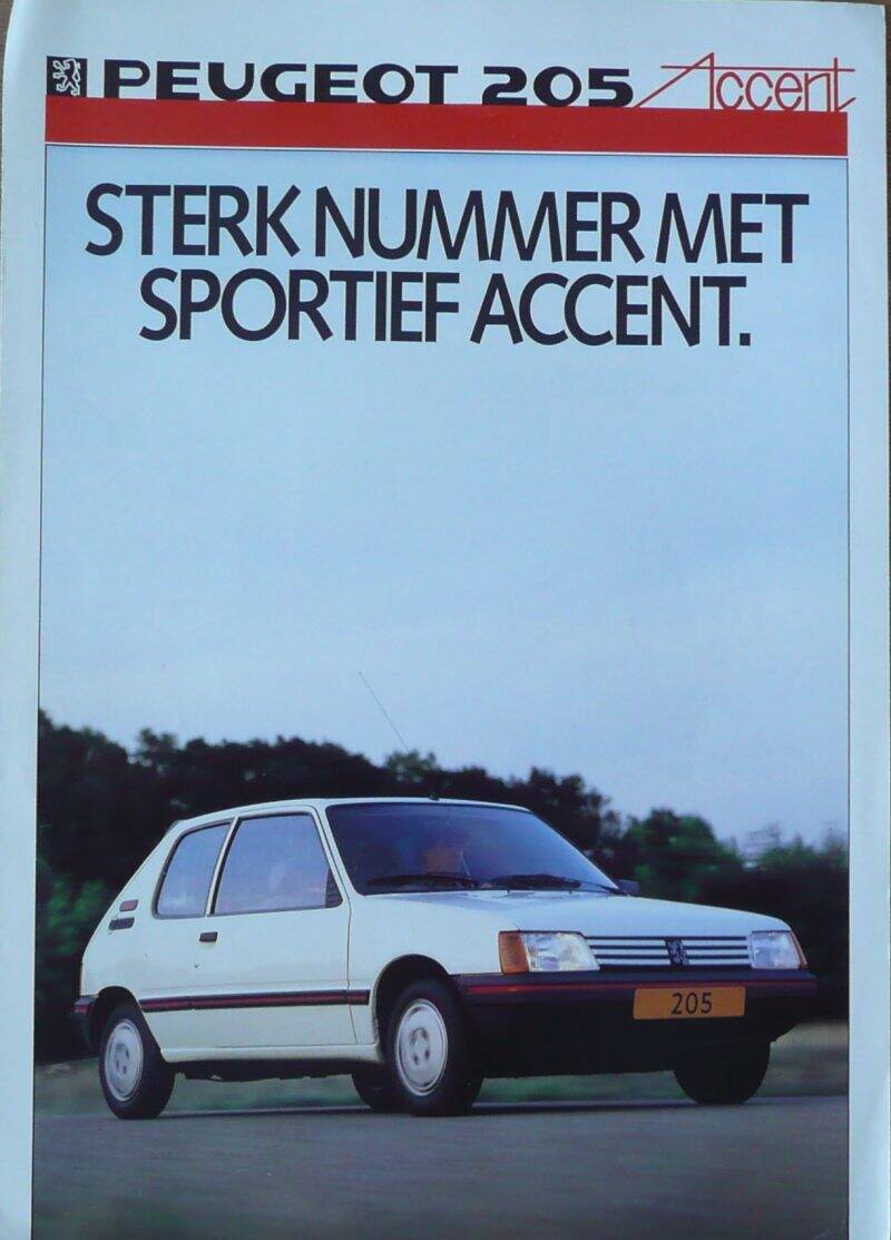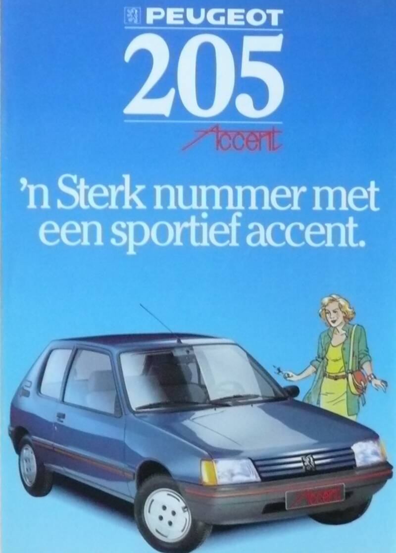 Een Nederlandstalige brochure met 4 pagina's. Uitgifte datum niet bekent, zo rond 1986. Beschrijft de 205 Accent.