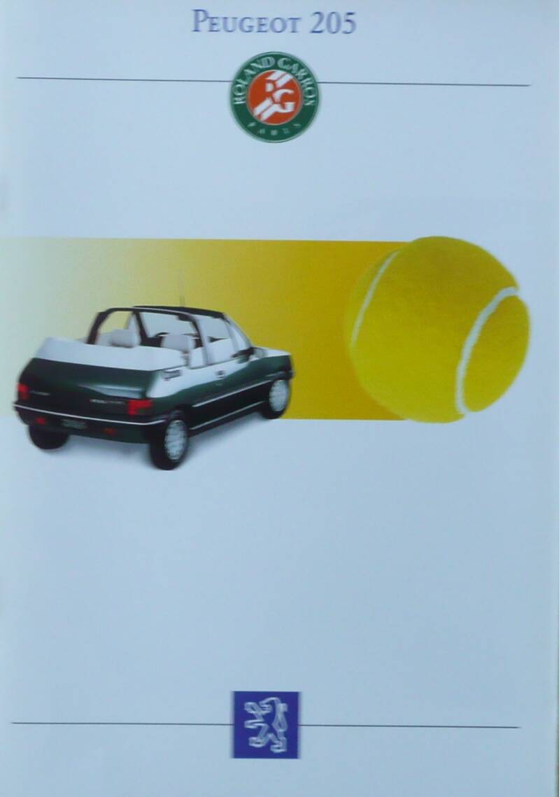 Een Nederlandstalige brochure met 12 pagina's. Uitgifte datum niet bekent. Beschrijft de 205 Cabriolet Roland Garros model 1993.