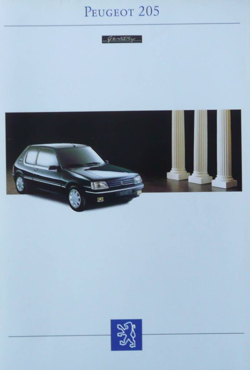 Een Nederlandstalige brochure met 12 pagina's. Uitgifte datum niet bekent. Beschrijft de 205 GTI model 1992.