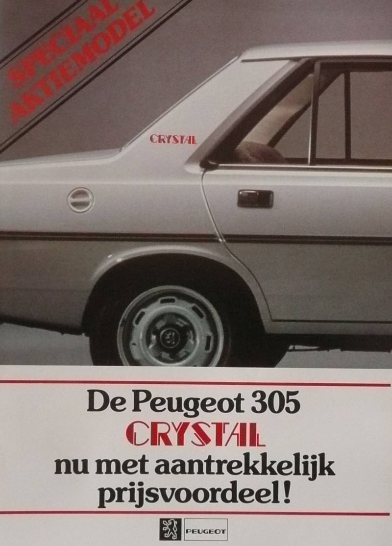Een Nederlandstalige brochure met 4 pagina's. Uitgifte datum niet bekent. Beschrijft de 305 Crystal.