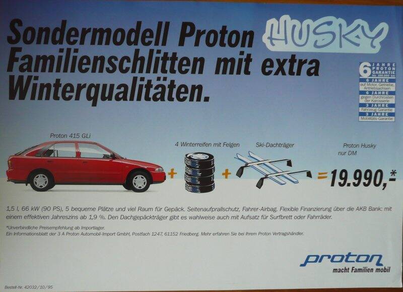 Een Duitstalige leaflet van de 415 GLi Husky. Uitgifte datum 10-1995.