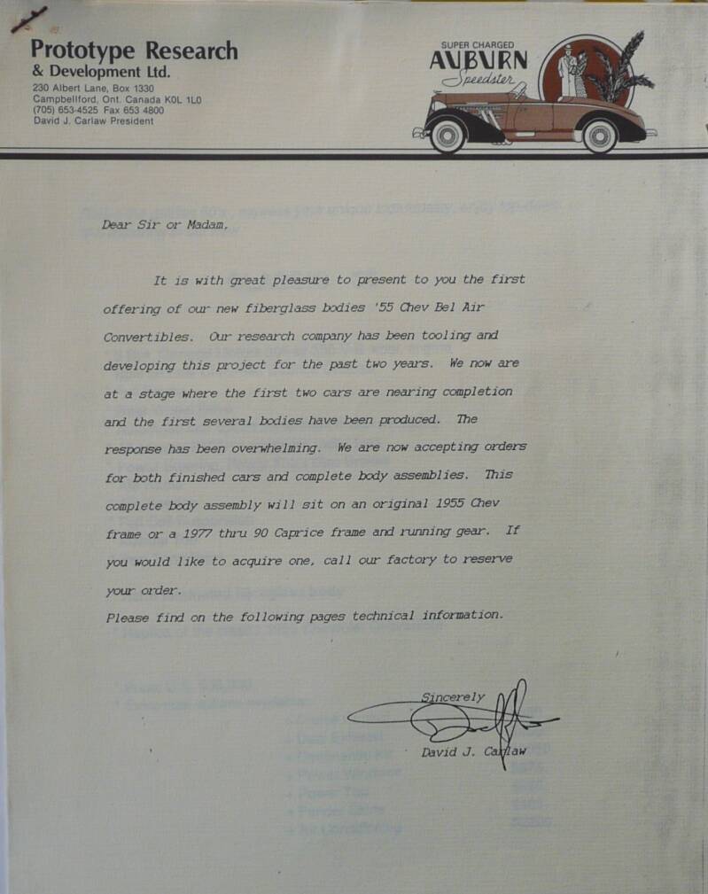 Sinds 1981 maakte Prototype Research & Development Ltd. diverse replica's en speciale bestellingen. Het bedrijf zit Canada. In totaal hebben ze ongeveer 3500 auto's gemaakt.
