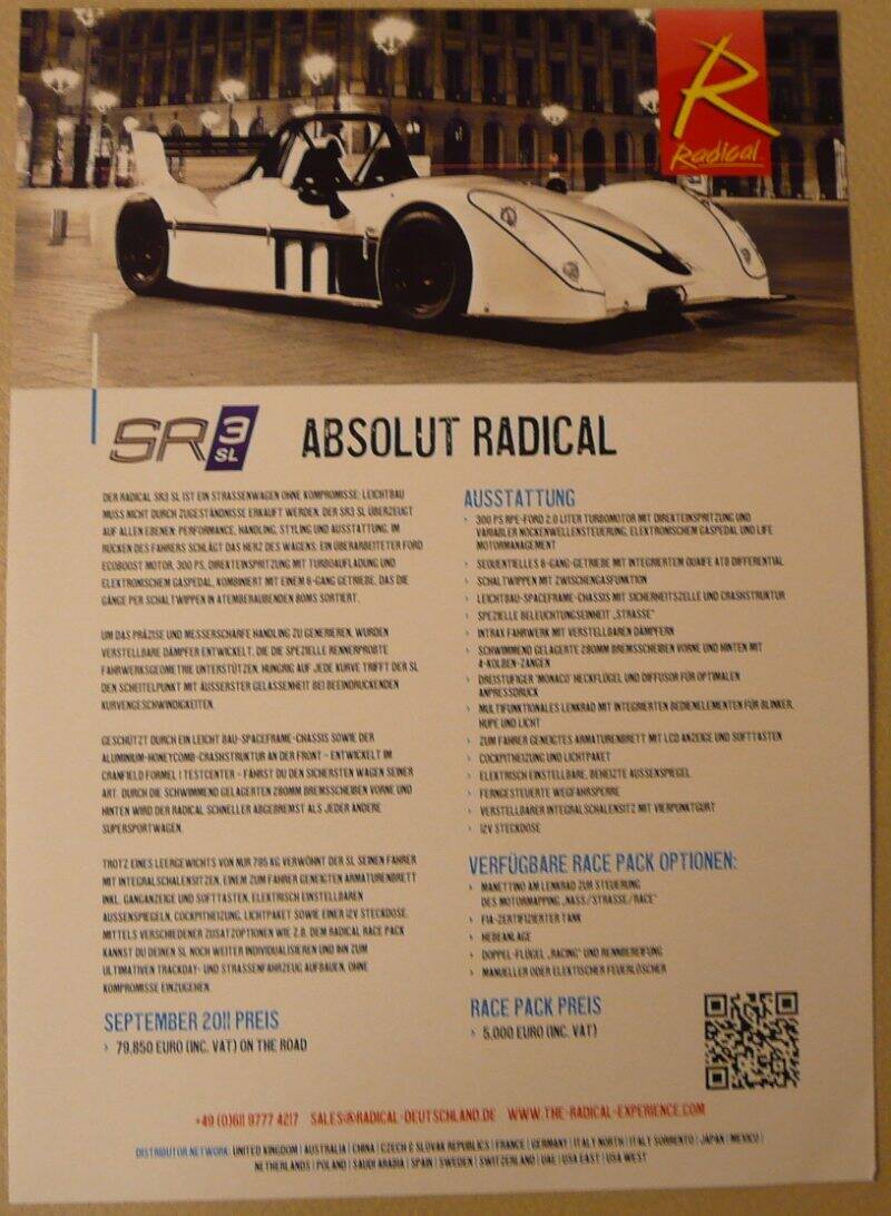 Een Duitstalige leaflet van de SR3 en is aan 1 zijde bedrukt. Uitgegeven tijdens de IAA van 2011.