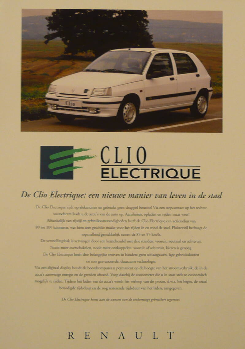 Een Nederlandstalige leaflet. Uitgifte datum niet bekent, zo rond 1994. Beschrijft de Clio Electrique.