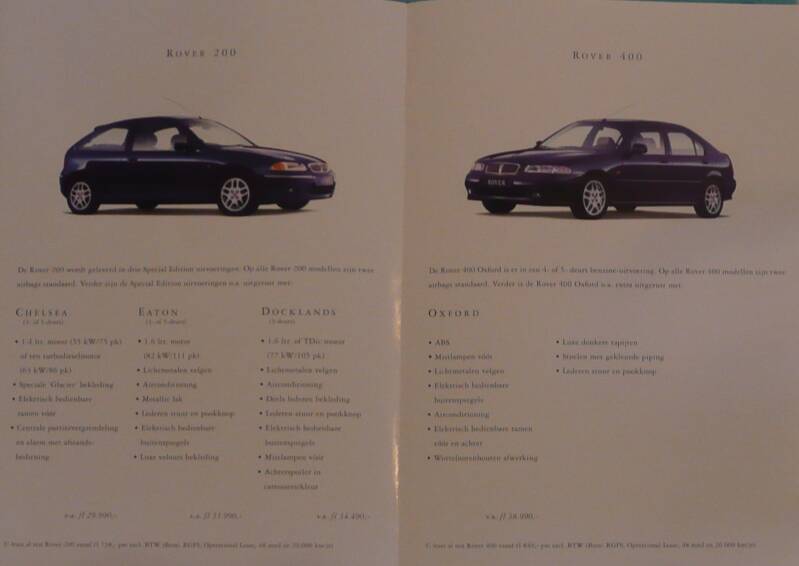 Een Nederlandstalige brochure met 4 pagina's. Uitgifte datum niet bekent, beschrijft de Rover Special Editions.