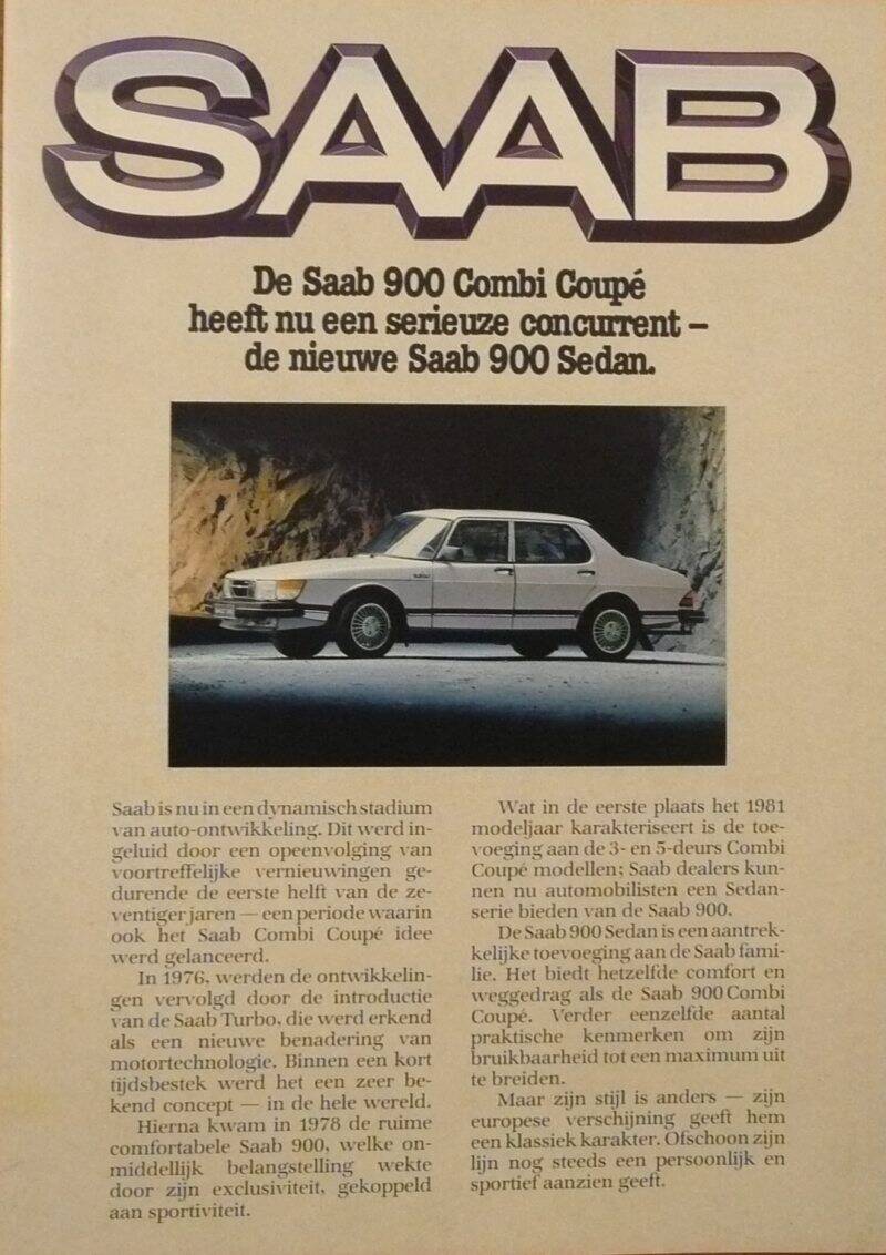 Een Nederlandstalige brochure met 8 pagina's. Uitgegeven in 1980. Beschrijft de 900 Sedan. Uitvouwbaar tot poster.
