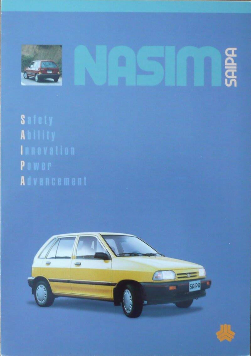 Een brochure met diverse losse bladen in het Engels en Iraans over het bedrijf Saipa Group. Uitgifte datum niet bekent, zo rond 2000.