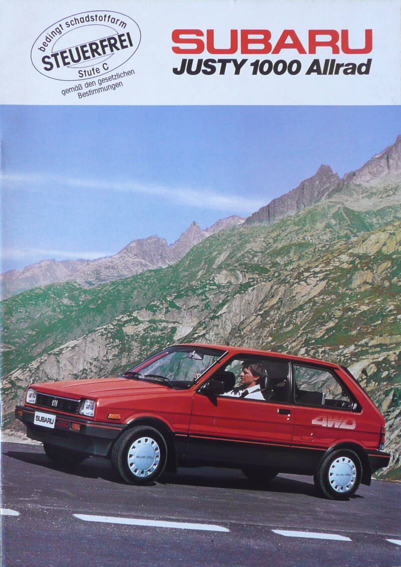 Een Duitstalige brochure met 18 pagina's. Uitgifte datum niet bekent, zo rond 1988. Beschrijft de Justy 1000 Allrad.