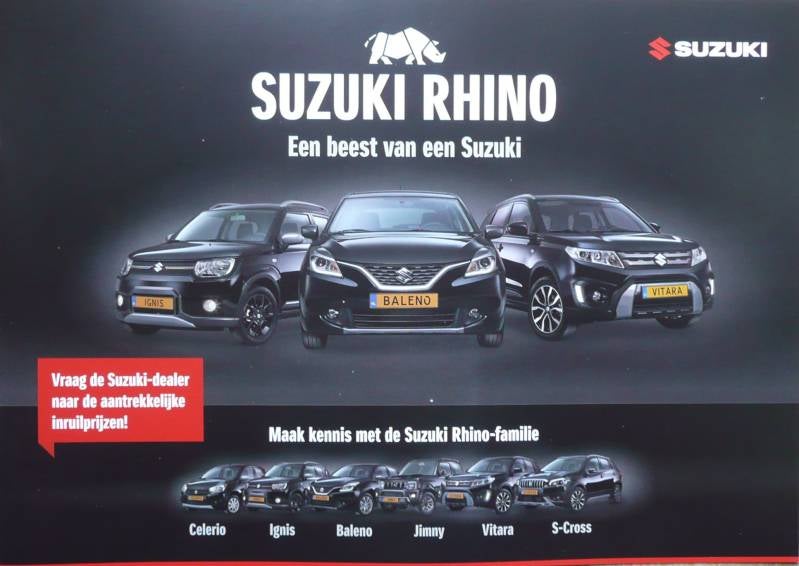 Een Nederlandstalige brochure met 8 pagina's. Uitgegeven in 2017. Beschrijft de Rhino modellen.