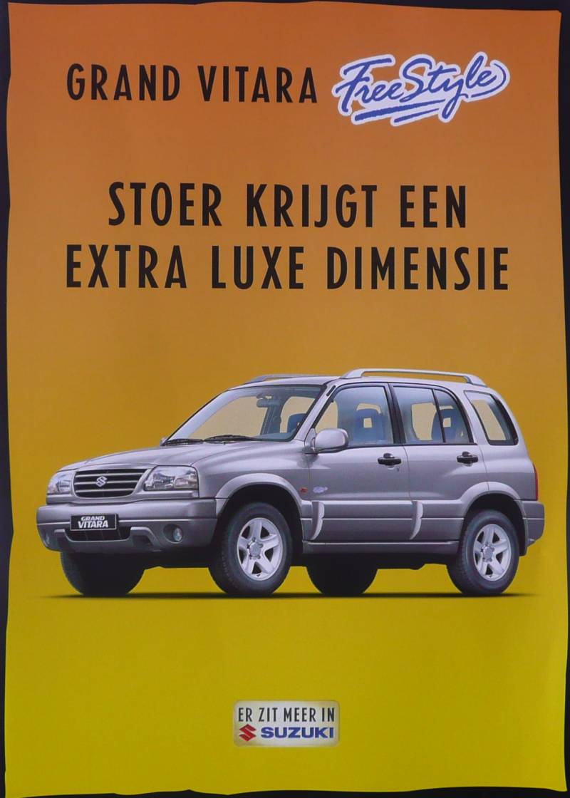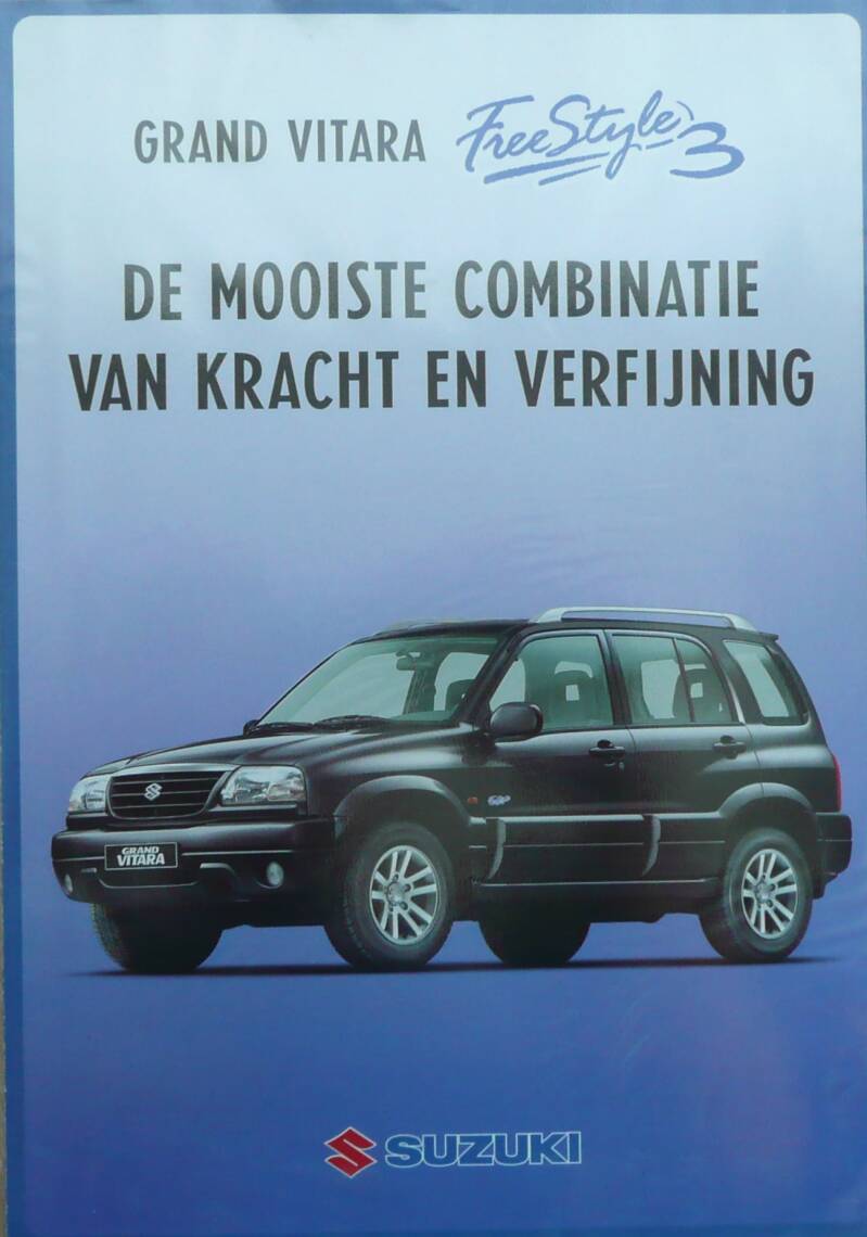 Een Nederlandstalige leaflet. Uitgegeven in 2002. Beschrijft de Grand Vitara Freestyle.