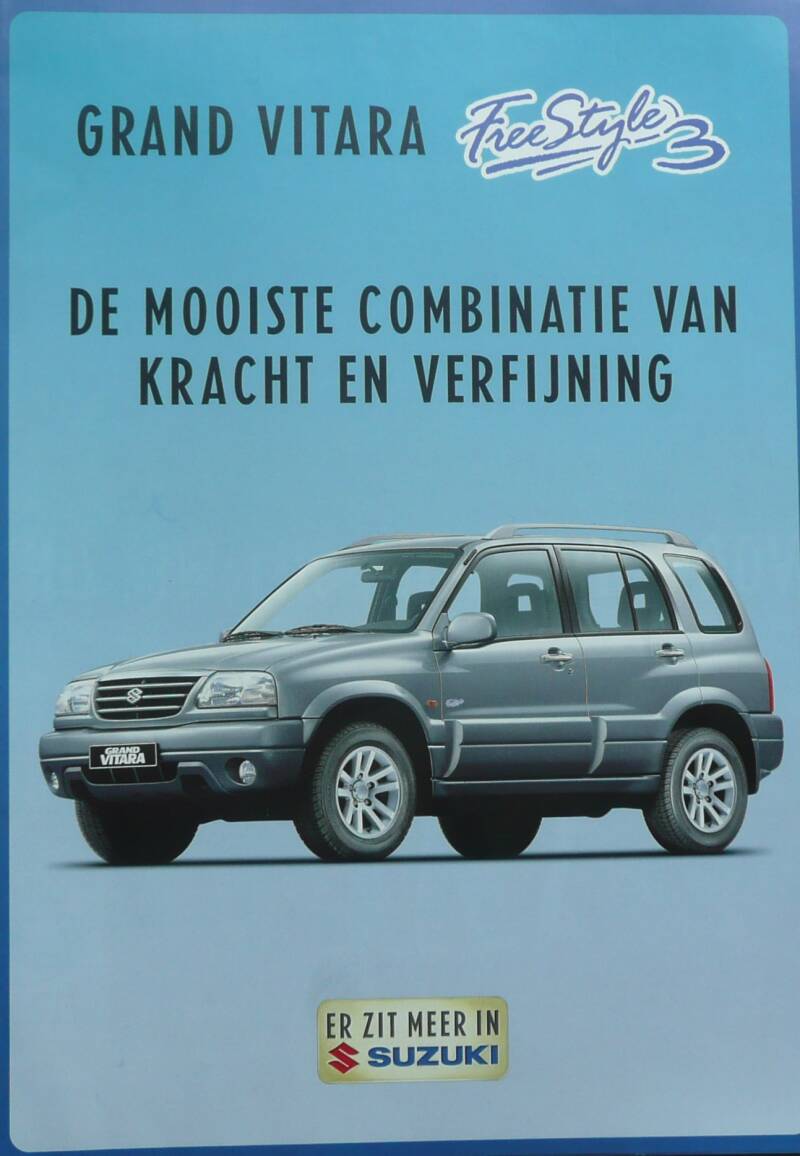 Een Nederlandstalige brochure met 4 pagina's. Uitgegeven in 2003. Beschrijft de Grand Vitara Freestyle 3.