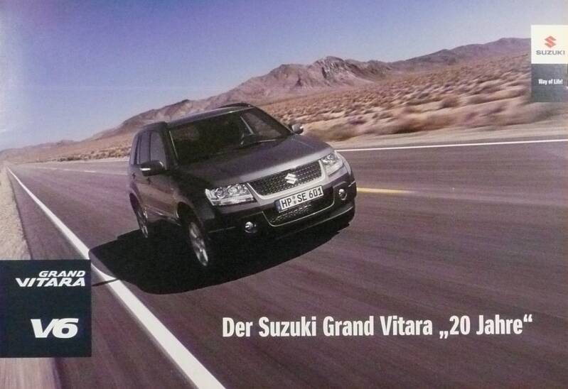 Een Duitstalige brochure met 12 pagina's. Uitgifte datum 09-2008. Beschrijft de Grand Vitara V6 20 Jahre.