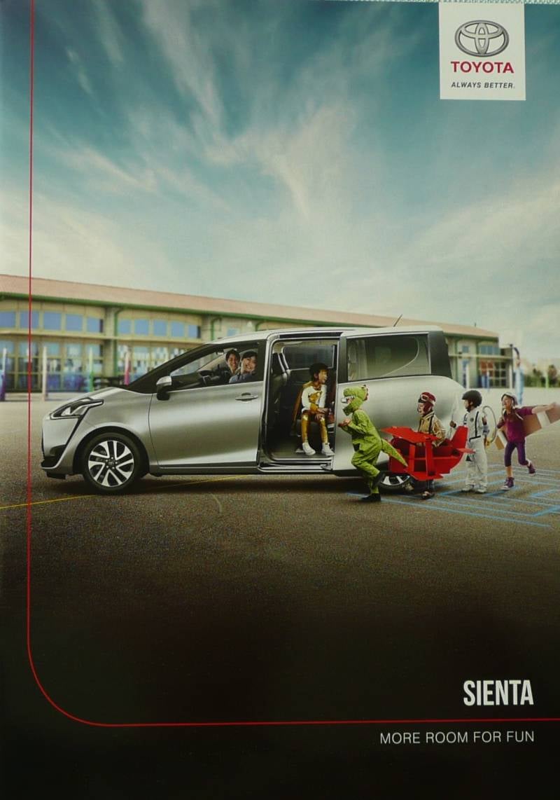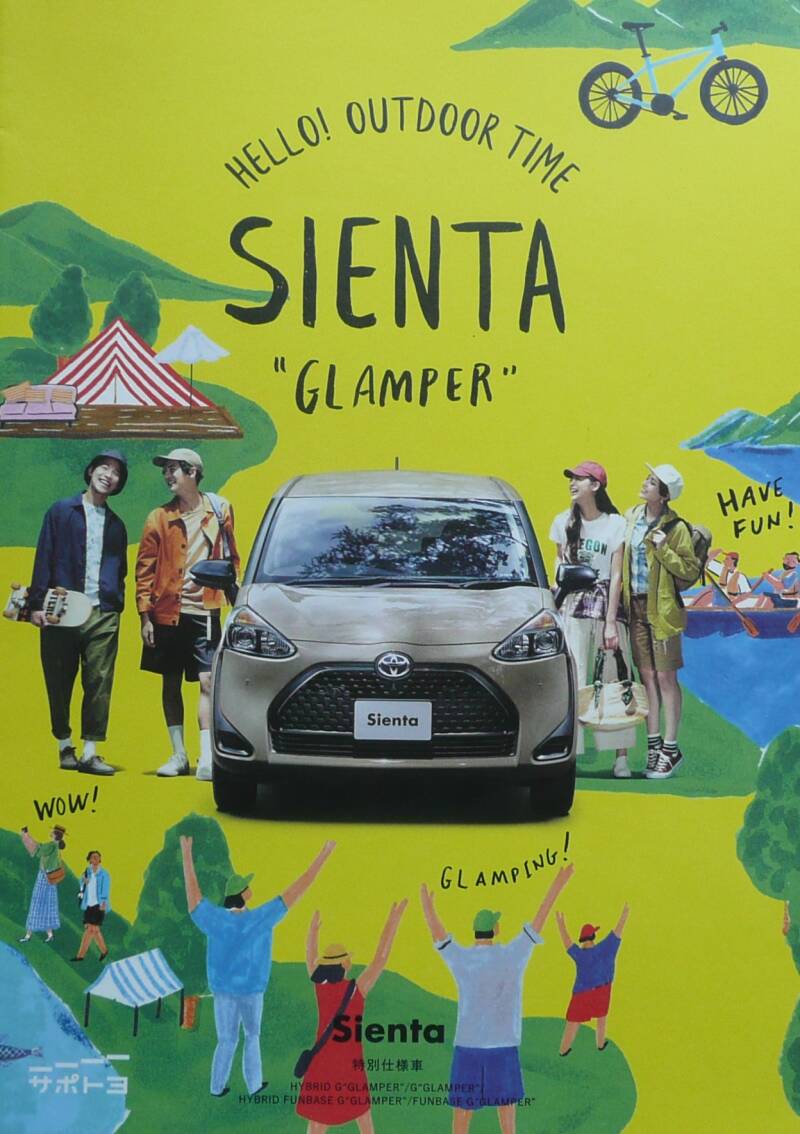 Een Japanse brochure met 8 pagina's. Uitgifte datum 06-2020. Beschrijft de Sienta Glamper.