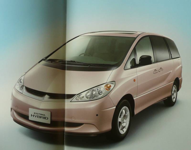 Een Japanse brochure met 30 pagina's. Uitgifte datum niet bekent, zo rond 2010. Beschrijft de Estima Hybrid