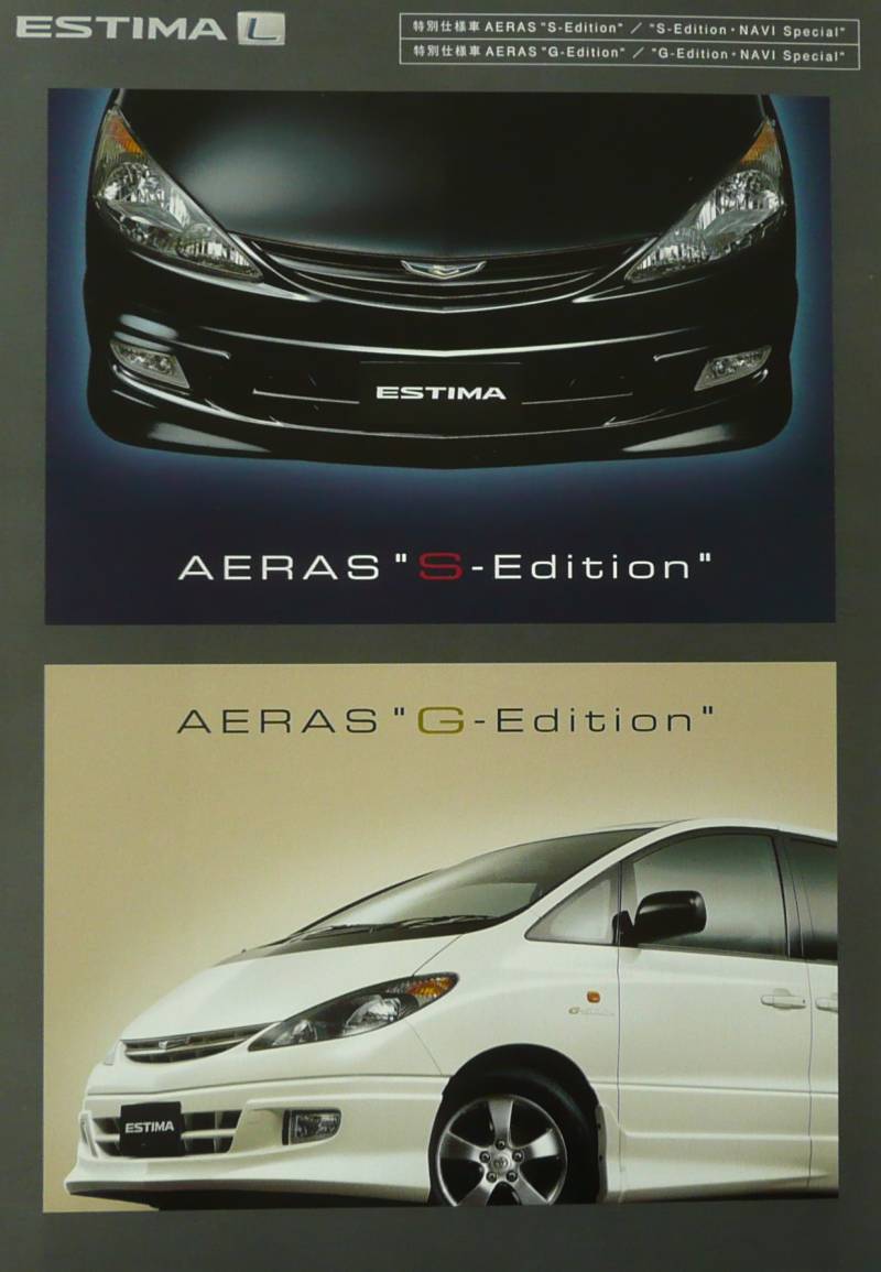 Een Japanse brochure met 6 pagina's. Uitgifte datum 07-2002. Beschrijft de Estima T Aeras S en G Edition.
