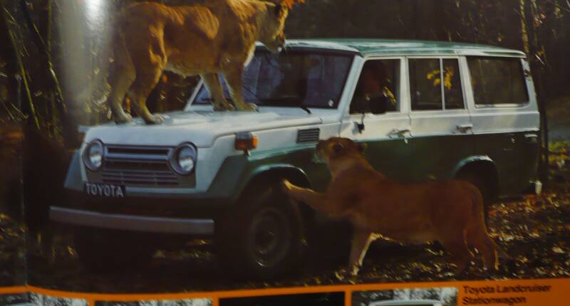 Een Nederlandstalige brochure met 8 pagina's. Uitgifte datum niet bekent, zo rond 1981. Beschrijft de Landcruiser en ook een Hilux model