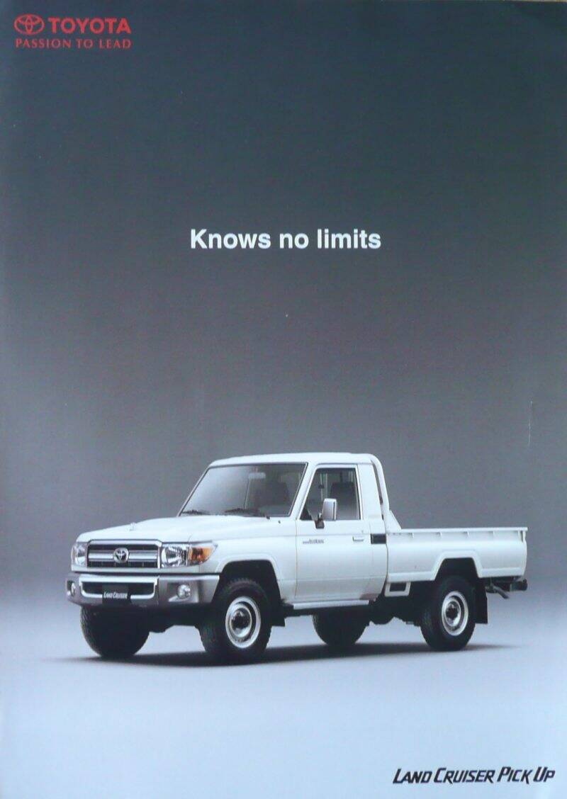 Een Engelstalige leaflet van de LandCruiser Pick Up uit Dubai. Uitgifte datum niet bekent, zo rond 2010.