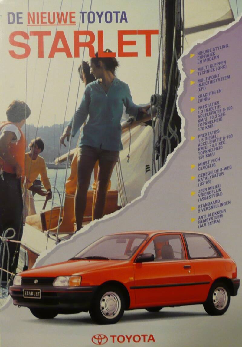 Een Nederlandstalige leaflet. Uitgifte datum 08-1996. Beschrijft de Starlet Sport 16V.
