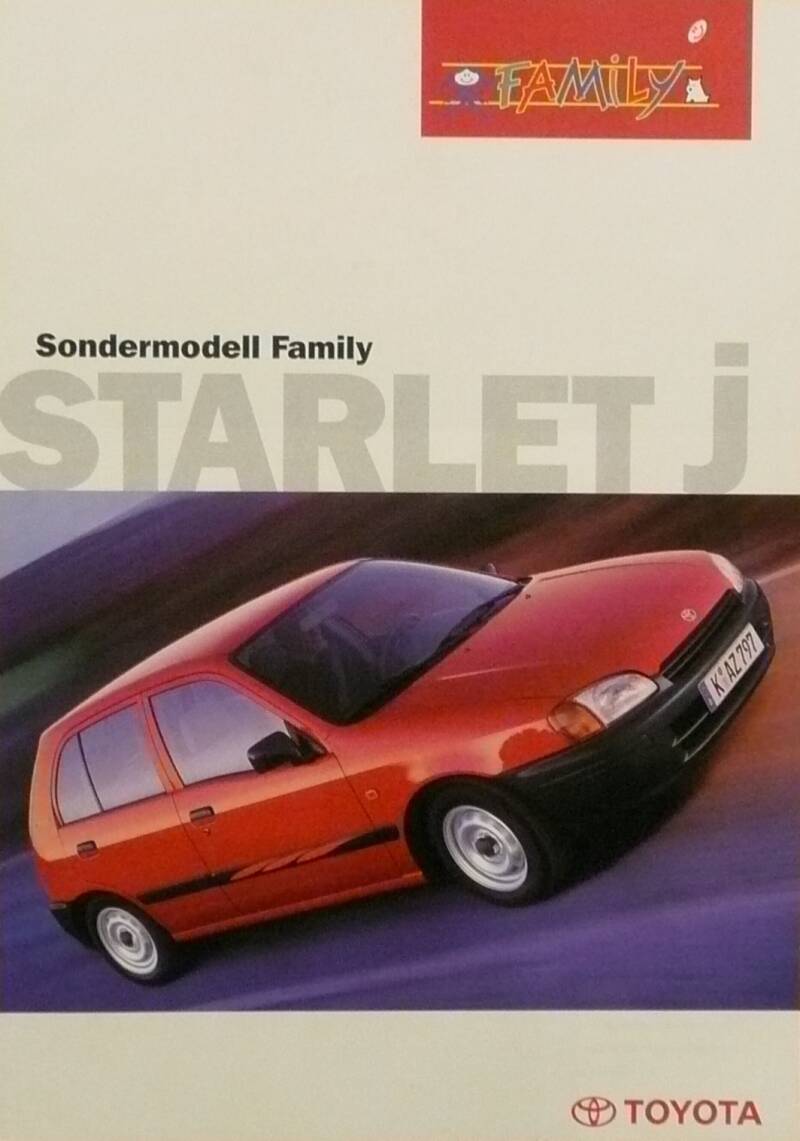 Een Duitstalige brochure met 4 pagina's. Uitgifte datum 07-1997. Beschrijft de Starlet Family.