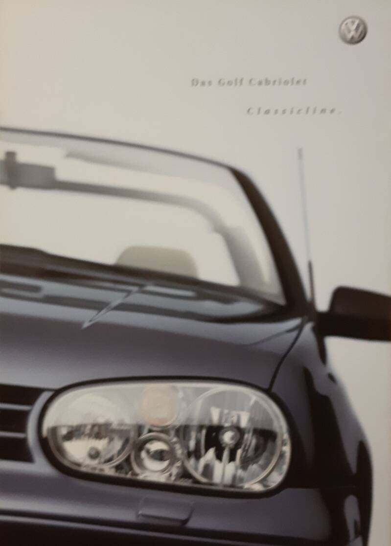 Een Duitstalige brochure met 16 pagina's. Uitgifte datum 10-2001. Beschrijft de Golf Cabrio Classicline.