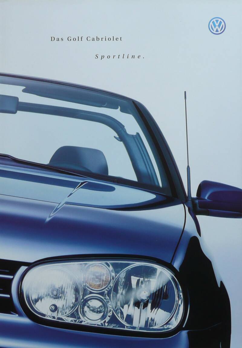 Een Duitstalige brochure met 18 pagina's. Uitgifte datum 09-2000. Beschrijft de Golf Cabrio Sportline.