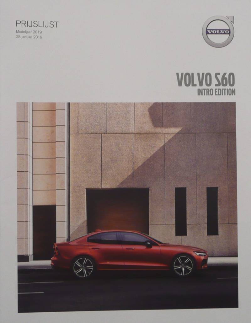 Een Nederlandstalige prijslijst brochure met 20 pagina's. Uitgifte datum 05-2019. Beschrijft de S60.