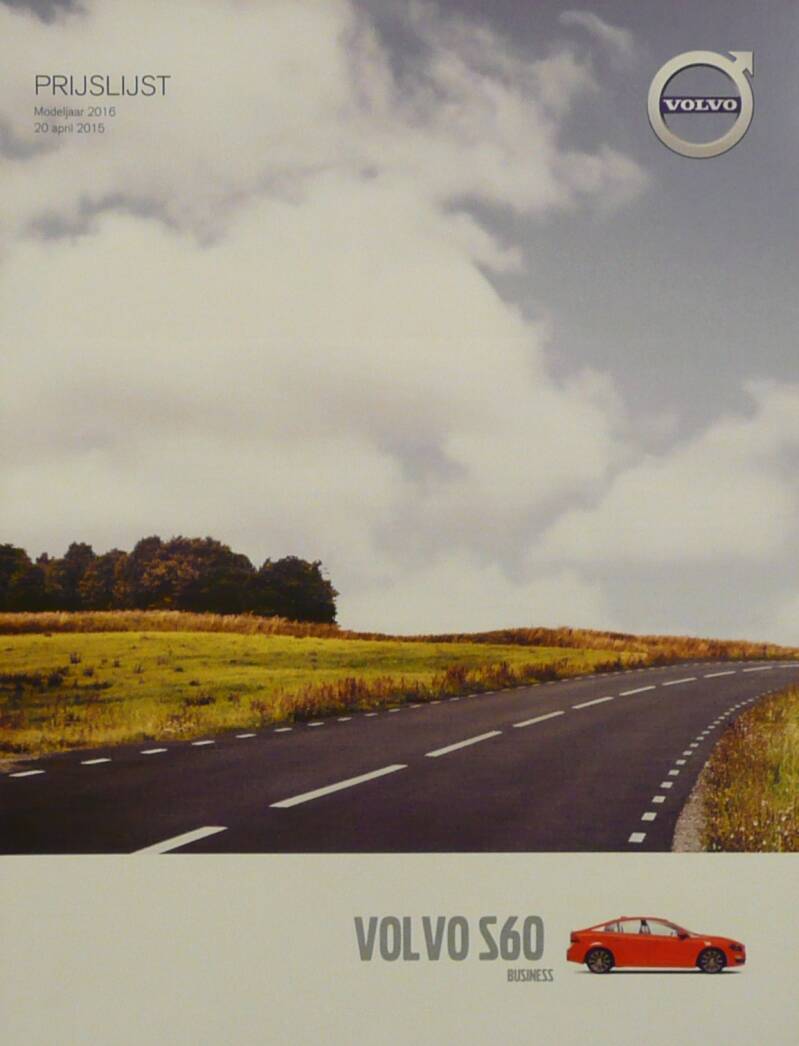 Een Nederlandstalige prijslijst brochure met 14 pagina's. Uitgifte datum 04-2015. Beschrijft de S60 Business.