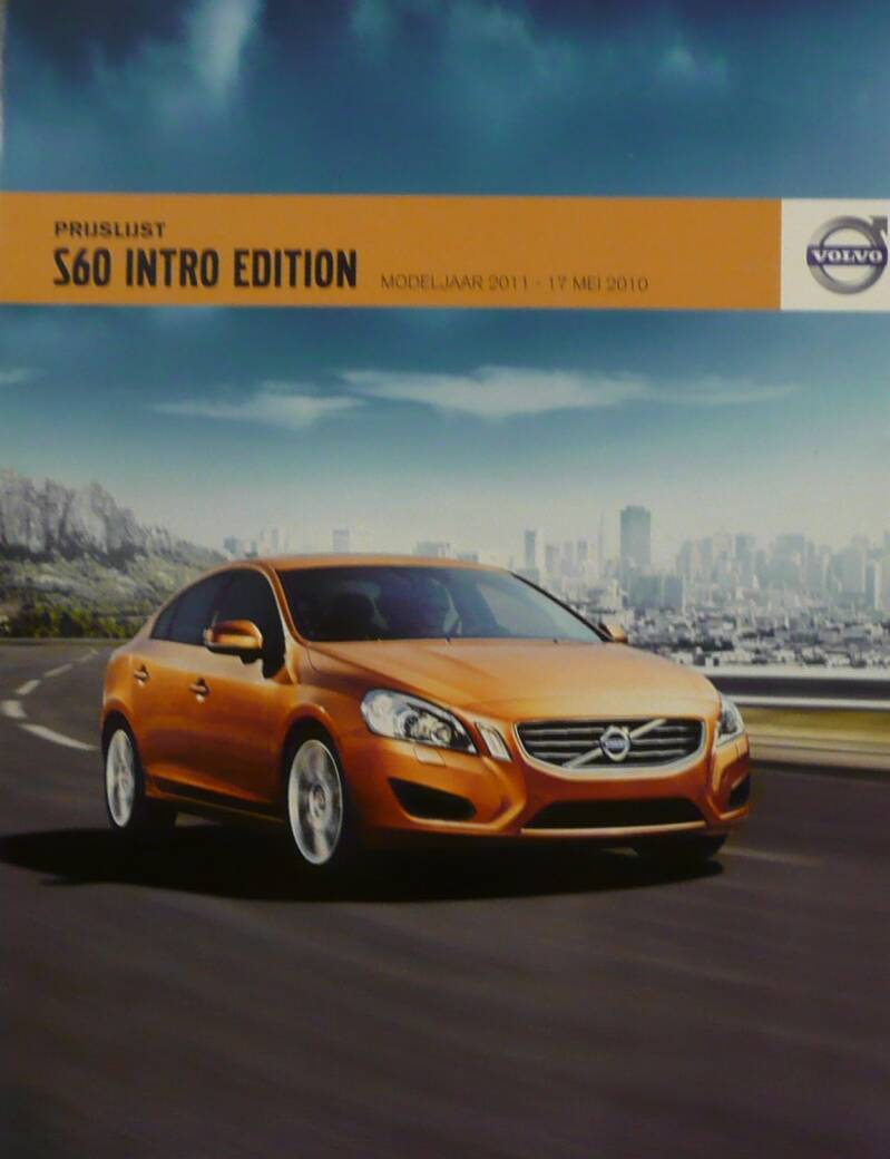 Een Nederlandstalige prijslijst brochure met 4 pagina's. Uitgifte datum 05-2010. Beschrijft de S60 Intro Edition.