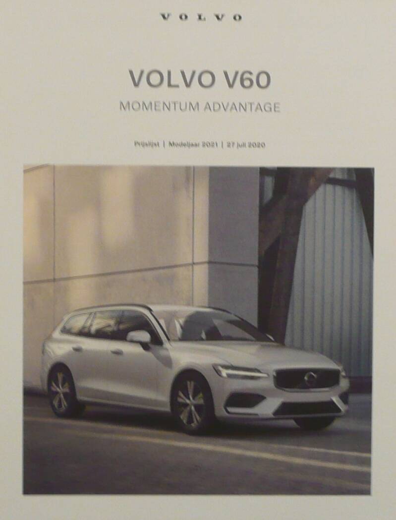 Een Nederlandstalige prijslijst brochure met 12 pagina's. Uitgifte datum 07-2020. Beschrijft de V60 Momentum Advantage.