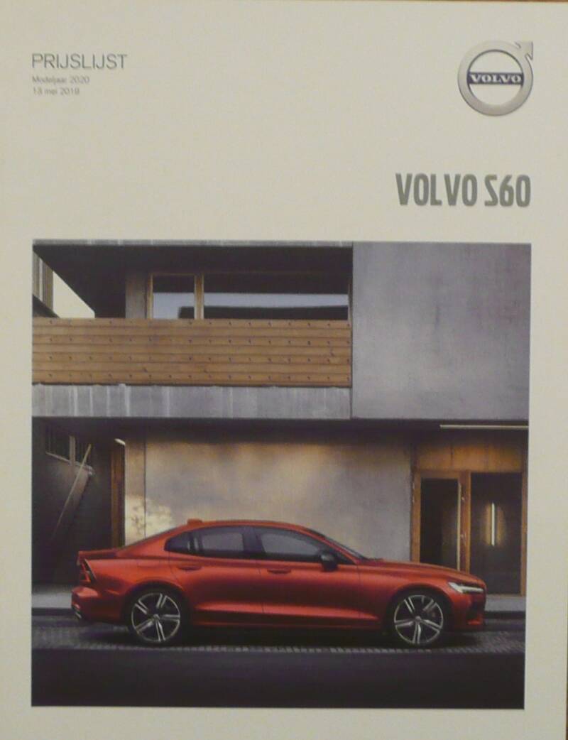 Een Nederlandstalige magazine met 56 pagina's. Uitgegeven in 2018. Volvo is gestopt met drukken van brochure voor model 2020. Van de S60 is alleen een magazine.