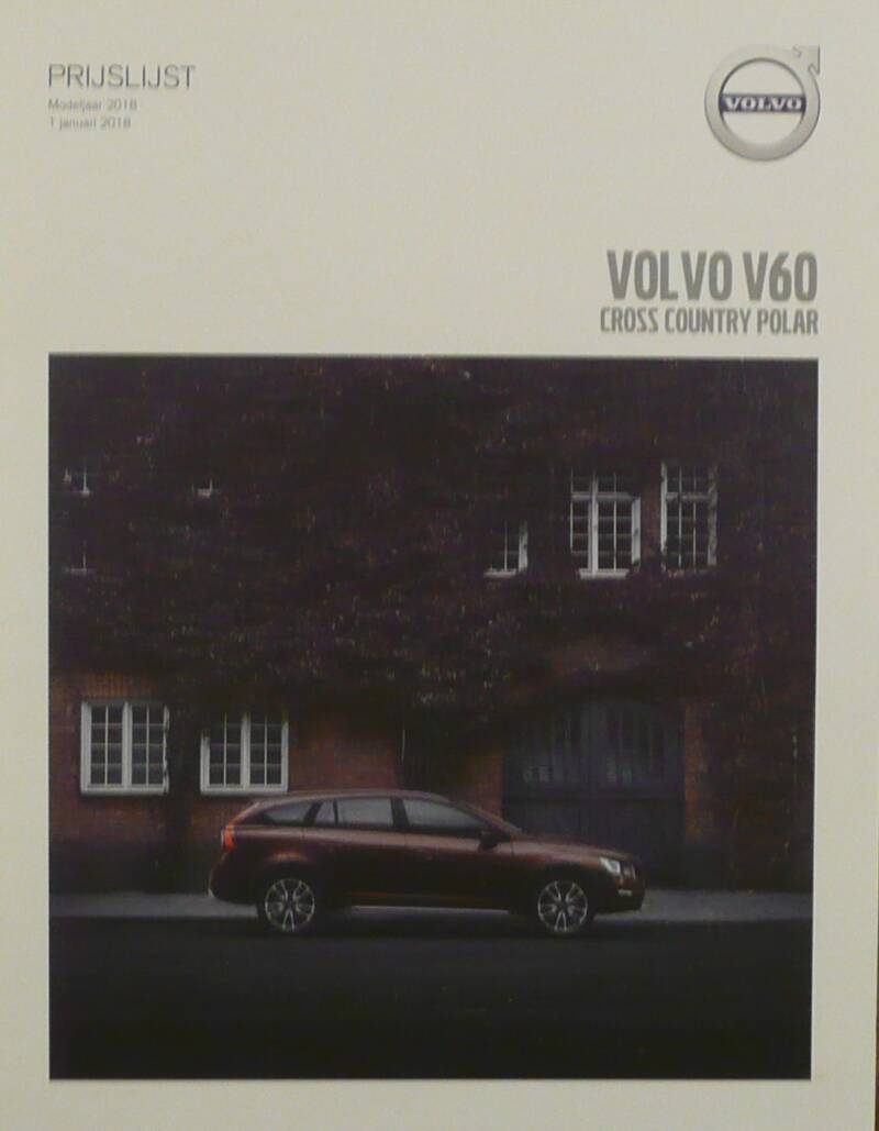 Een Nederlandstalige prijslijst brochure met 16 pagina's. Uitgifte datum 01-2018. Beschrijft de V60 Cross Country Polar.