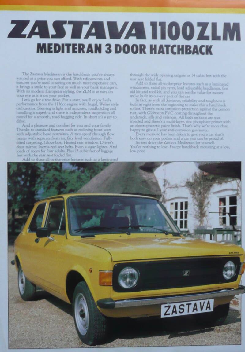 De hieronder weergegeven brochure is een modellenprogramma van verschillende Zastava's. In deze brochure worden de Yugo 45, GTL 55 en de GTL 65 weergegeven. De Nederlandse brochure heeft 14 pagina's en komt vermoedelijk uit 1983.